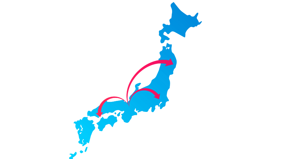 お客様のご要望によっては、関東地方や九州地方への輸送にも対応し、更には東北や北海道への輸送も承ります。これまでの実績としましては、離島などへの輸送も含めて、北は北海道から南は沖縄まで、日本全国への輸送を承った経験がございます。